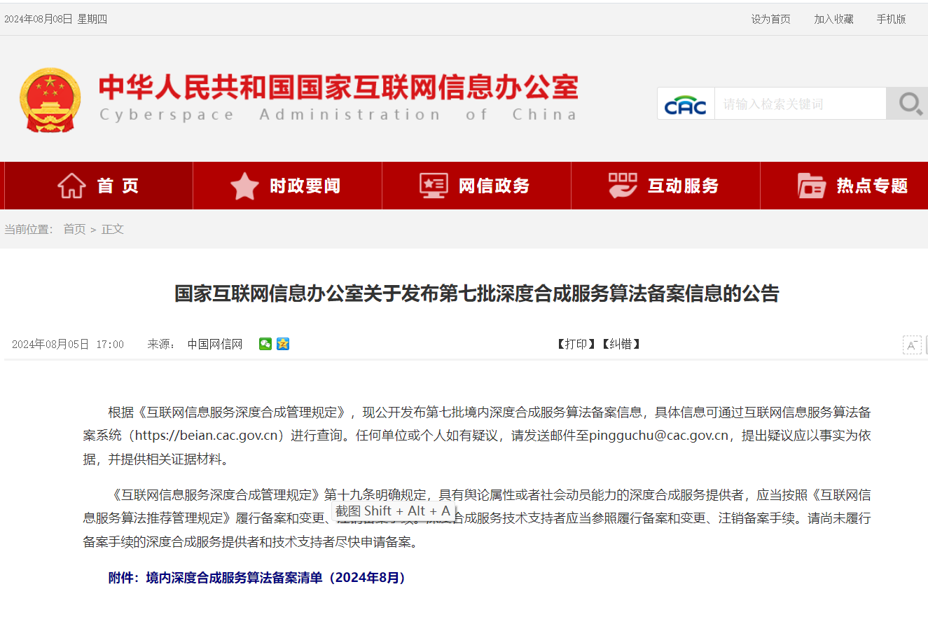 《生成式人工智能服務管理暫行辦法》已經2023年5月23日國家互聯網信息辦公室2023年第12次室務會會議審議通過,并經國家發展和改革委員會、教育部、科學技術部、工業和信息化部、公安部、國家廣播電視總局同意,現予公布,自2023年8月15日起施行。