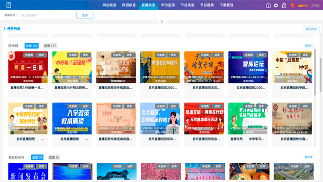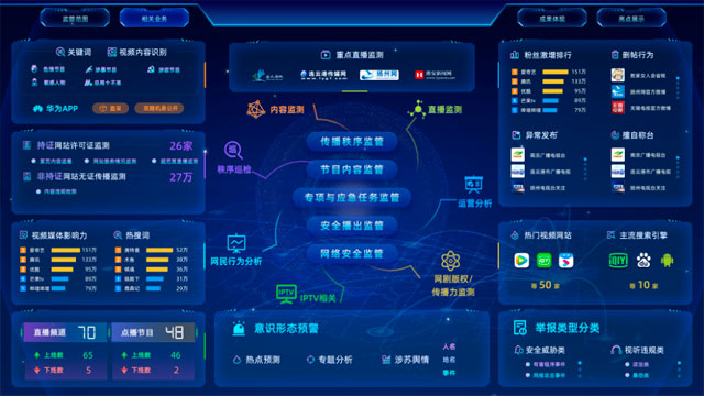 打破“一個業(yè)務(wù)、一個系統(tǒng)、一套設(shè)備”的建設(shè)模式。實(shí)現(xiàn)網(wǎng)絡(luò)視聽新媒體各類業(yè)務(wù)在一個平臺上融合監(jiān)管、監(jiān)管大數(shù)據(jù)在一個平臺上匯聚共享、監(jiān)管結(jié)果在一個平臺上收錄發(fā)布,實(shí)現(xiàn)了全業(yè)務(wù)、全流程、多維度的智能化、便捷化監(jiān)管。