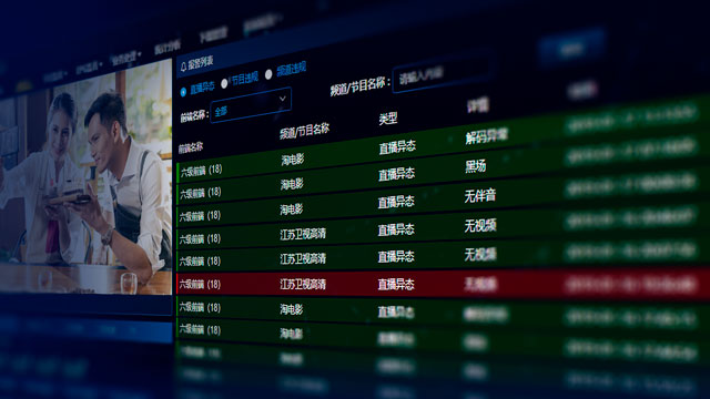 可采用分布式或集中式的部署方式,支持有線數(shù)字電視、地面數(shù)字電視、衛(wèi)星廣播電視、中波廣播、調(diào)頻廣播等全信號接入,針對各類信號形式進(jìn)行信道指標(biāo)、碼流指標(biāo)、視音頻異態(tài)等多維度監(jiān)測,為安播監(jiān)管提供數(shù)據(jù)支撐。
