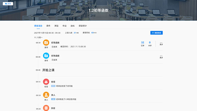 支持在線簽到、挑人提問、課堂測驗(yàn)、互動彈幕、實(shí)時搶答等互動方式; 學(xué)生可通過電腦、平板、手機(jī)等終端參與互動。